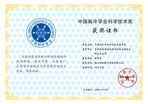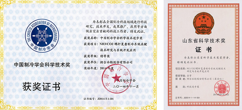 “NH3/CO2螺桿復疊制冷系統關鍵技術研究與系統開發應用”獲山東省科技進步一等獎和中國制冷學會科技進步特等獎。