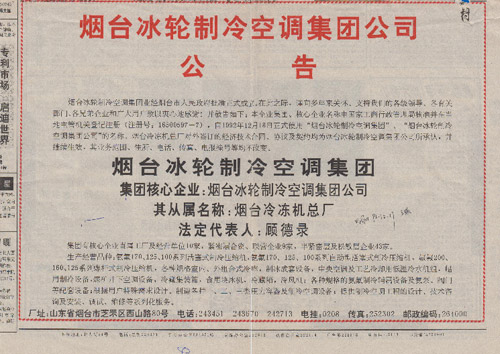 11月,煙臺冷凍機總廠股份制改革,公開向社會自然人發行股票。